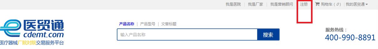 第一步 :点击首页顶部“注册”进入注册界面