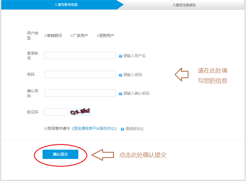 第二步 :按照提示选择用户类型,填写账号、密码及验证码,进入用户详细信息界面