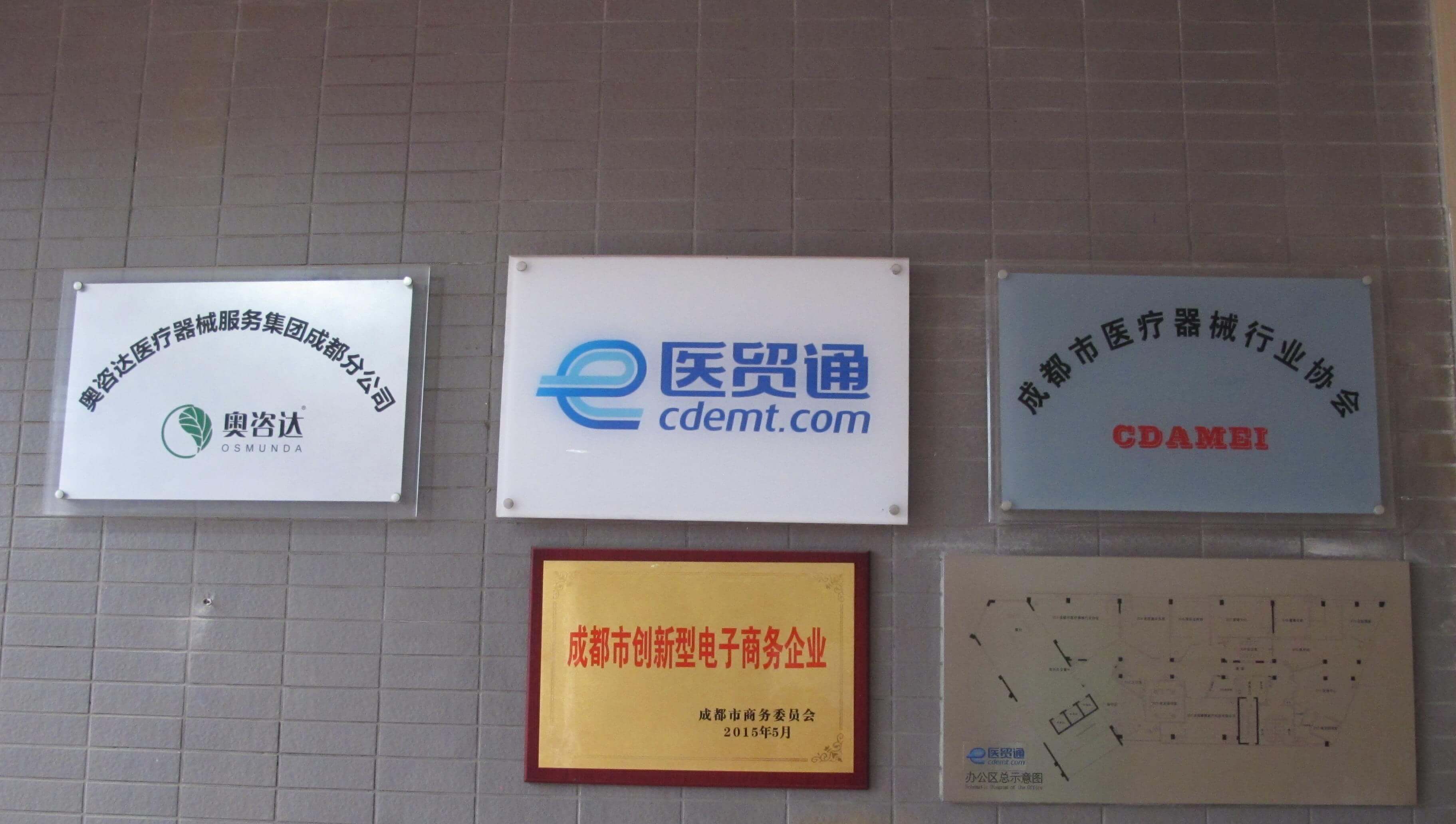 以上是公司商标及“成都市创新型电子商务企业”荣誉奖牌,并清晰的展现出了公司办公区域划分图。