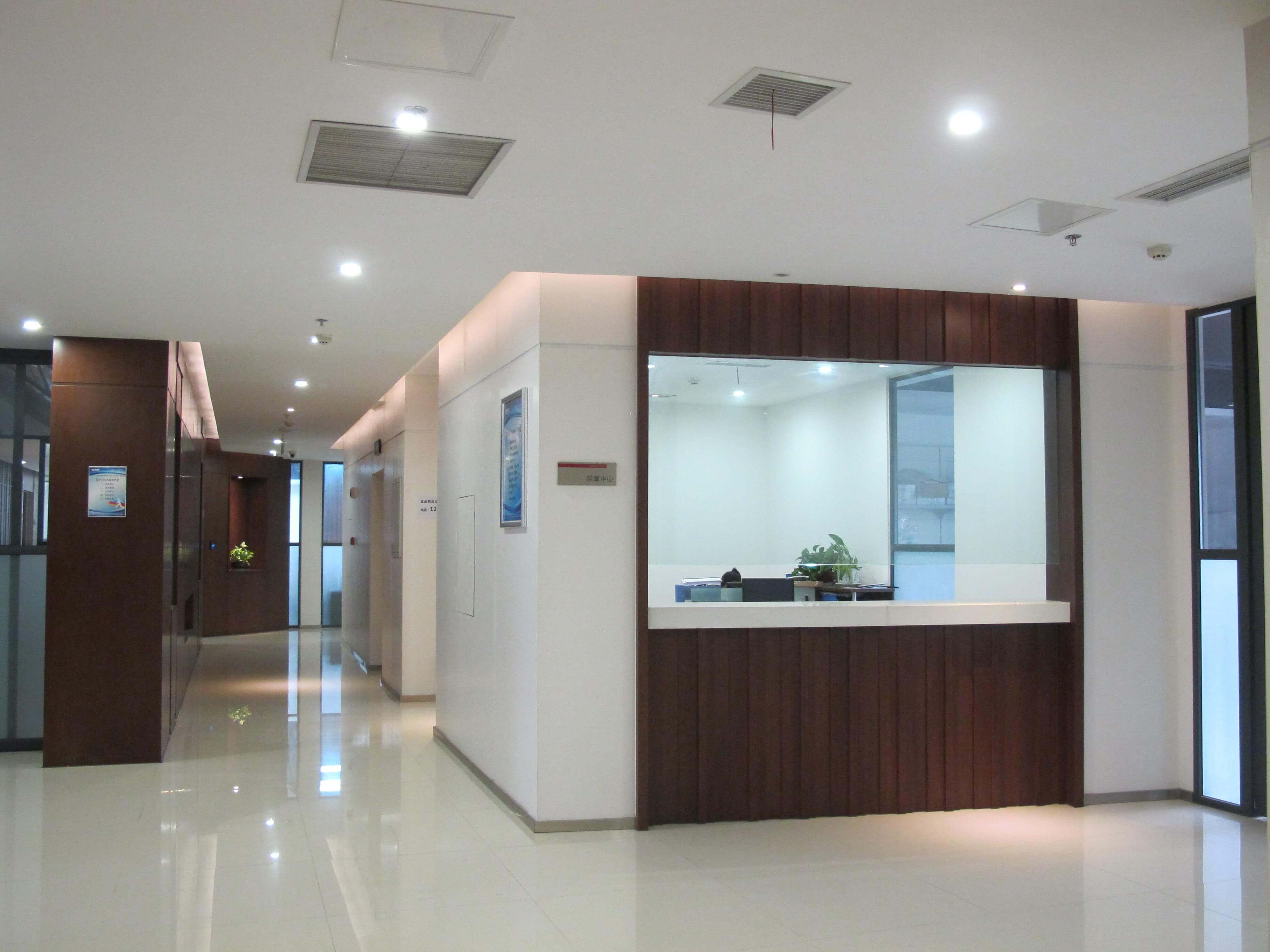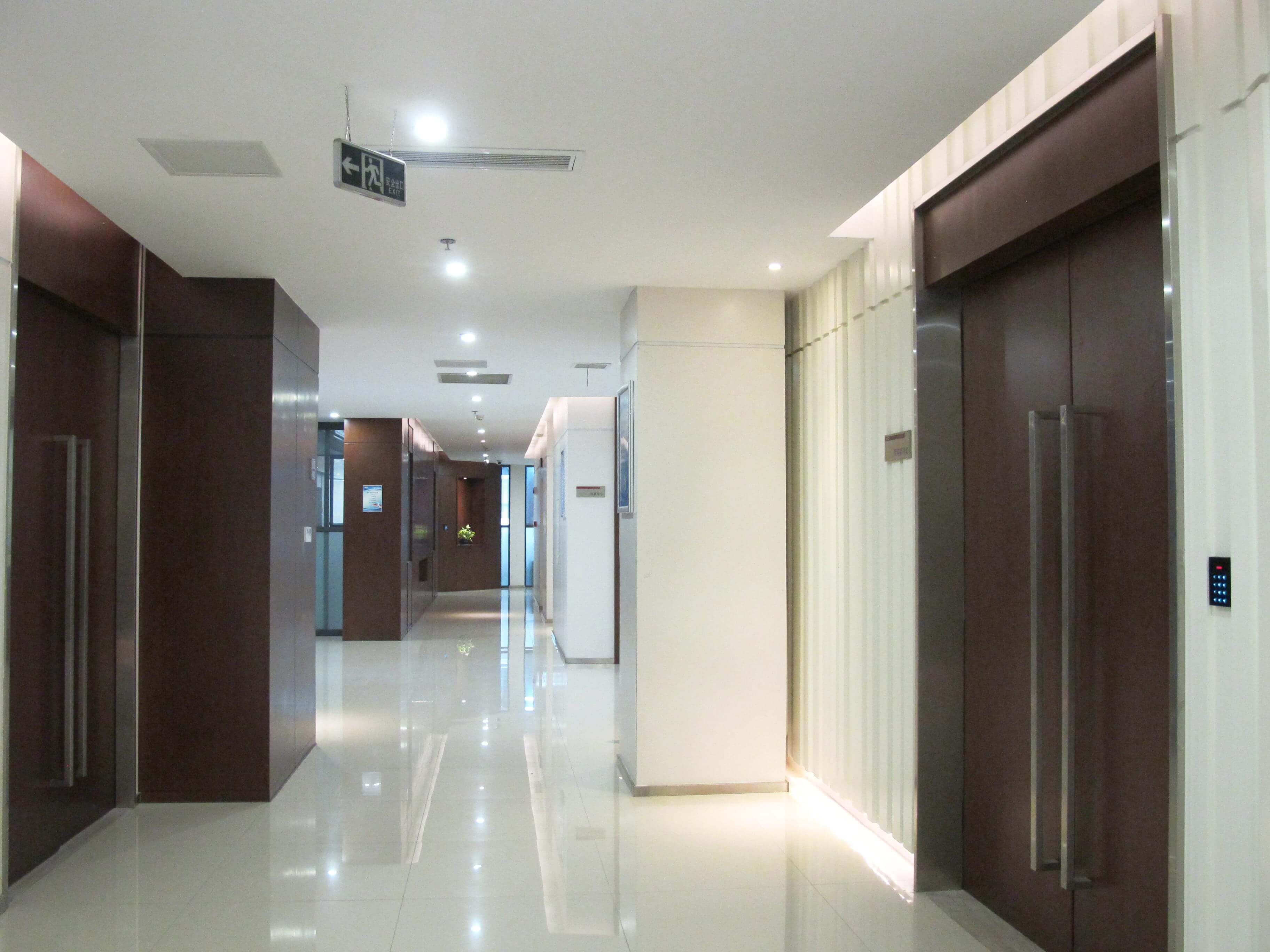 公司宽敞明亮的走廊两边是各部门的办公区域。