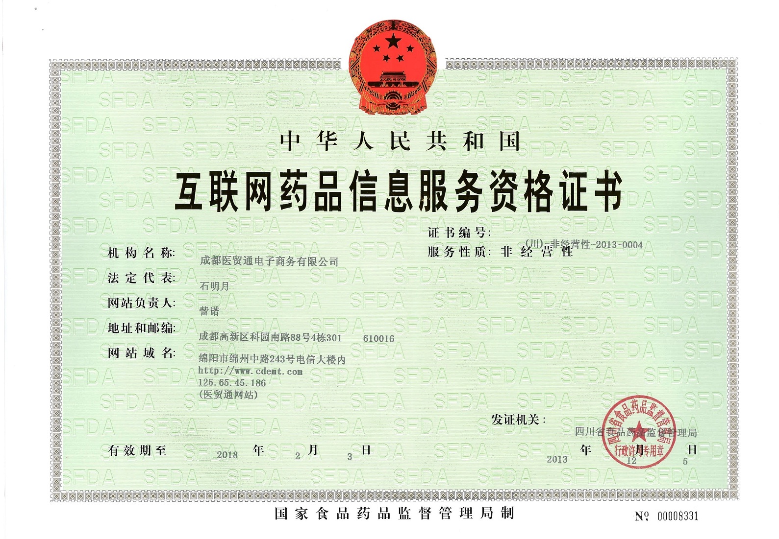 互联网药品信息服务资格证书:(川)-非经营性-2018-0012 ICP备案: 蜀ICP备15015407号-1 医疗器械经营许可证:川蓉食药监械经营许 20170922号